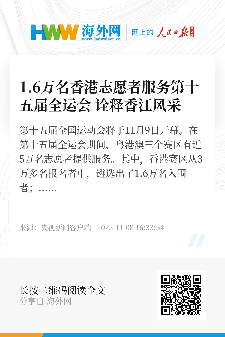 第十五届全国运动会将于11月9日开幕。在第十五届全运会期间,粤港澳三个赛区有近5万名志愿者提供服务。