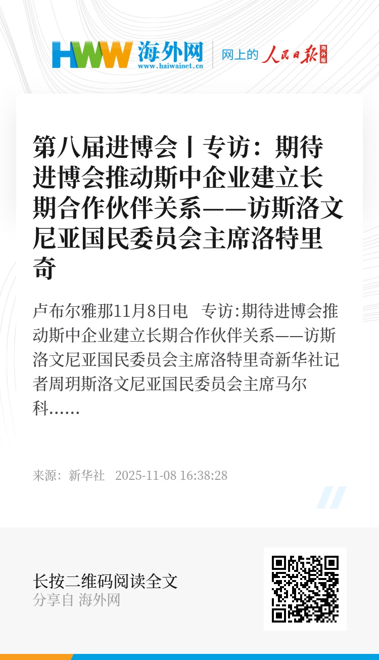 新华社卢布尔雅那11月8日电 专访:期待进博会推动斯中企业建立长期合作伙伴关系——访斯洛文尼亚国民委员会主席洛特里奇
