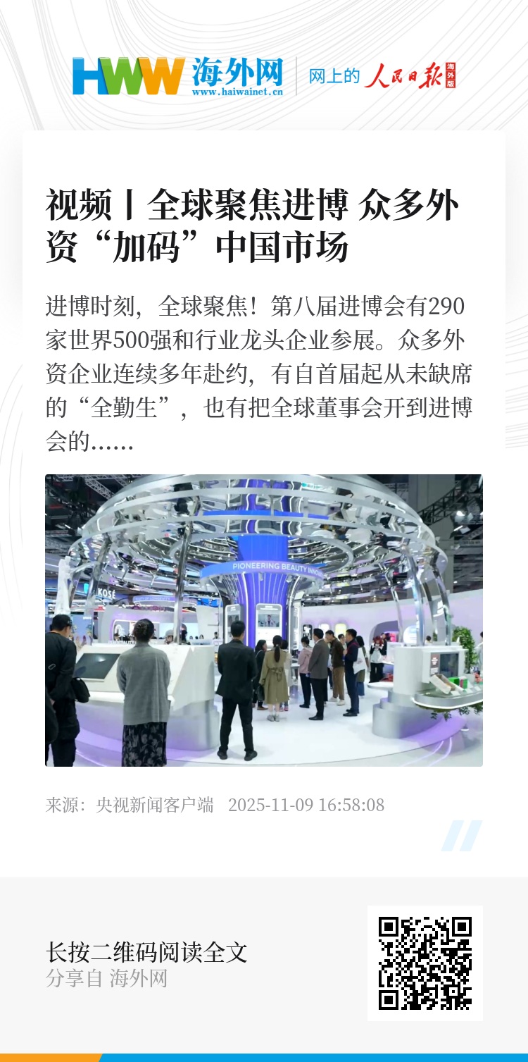 众多外资企业连续多年赴约,有自首届起从未缺席的“全勤生”,也有把全球董事会开到进博会的跨国企业。国际社会参与更广、更深,众多外资纷纷“加码”中国市场,用实际行动诠释信心与期待。