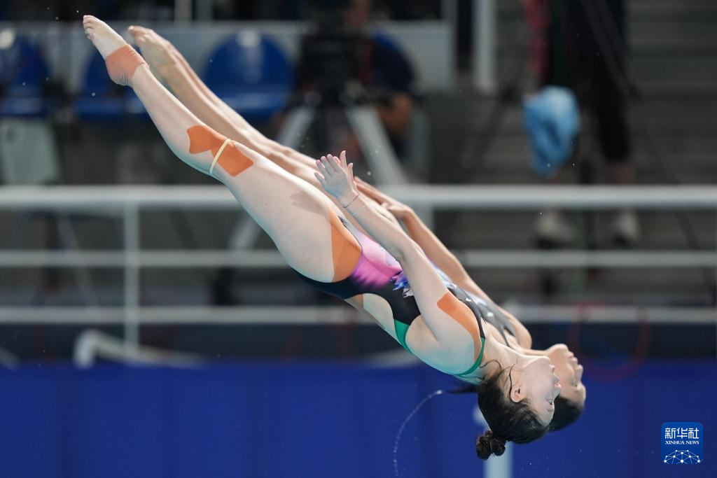 当日,第十五届全国运动会女子双人3米跳板决赛在广州举行。最终,广东队组合陈艺文/林珊获得冠军,陕西队组合龙艺萍/司雅杰、湖北队组合邓梦圆/叶林希分获亚军、季军。