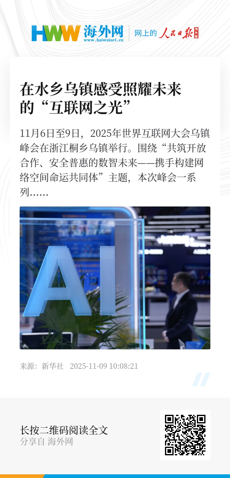 11月6日至9日,2025年世界互联网大会乌镇峰会在浙江桐乡乌镇举行。围绕“共筑开放合作、安全普惠的数智未来——携手构建网络空间命运共同体”主题,本次峰会一系列重要活动和亮点活动,让与会嘉宾和观众深切感受到照耀未来的“互联网之光”。