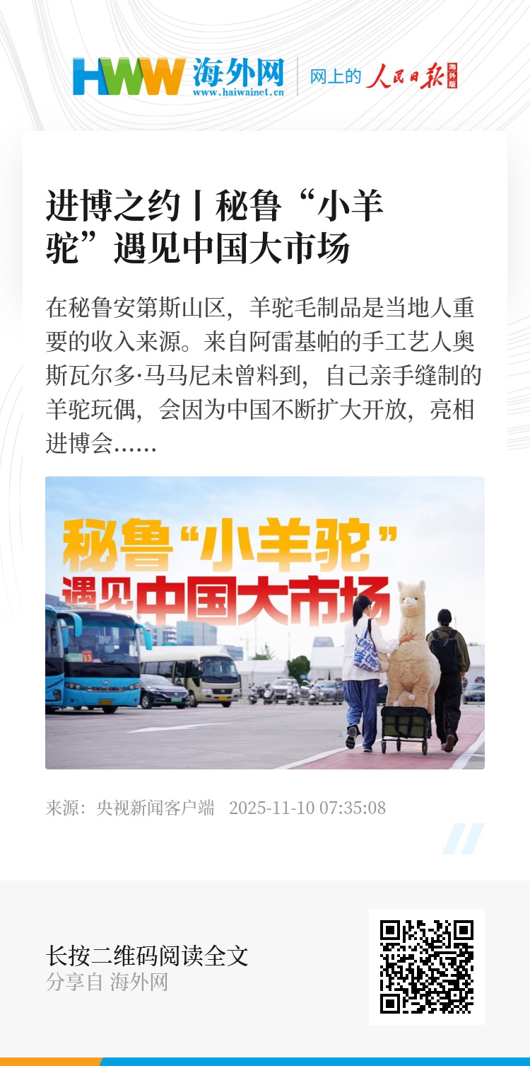 秘鲁“小羊驼”与中国大市场的“双向奔赴”,正是中国大市场成为世界大机遇的生动写照。更多合作共赢、彼此成就的故事,将在开放之路上继续书写。