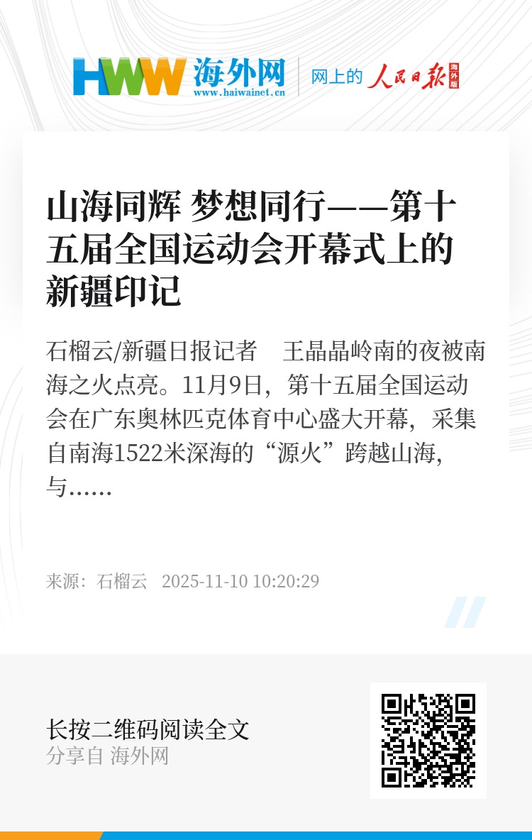 当竞技体育的拼搏之志与群众体育的热爱之情同频共振,当天山脚下的奋斗身影与湾区火炬的璀璨光芒交相辉映,体育的力量正化作推动发展、凝聚力量的强大动力,在体育强国的征程上,书写更多温暖人心的新疆篇章。