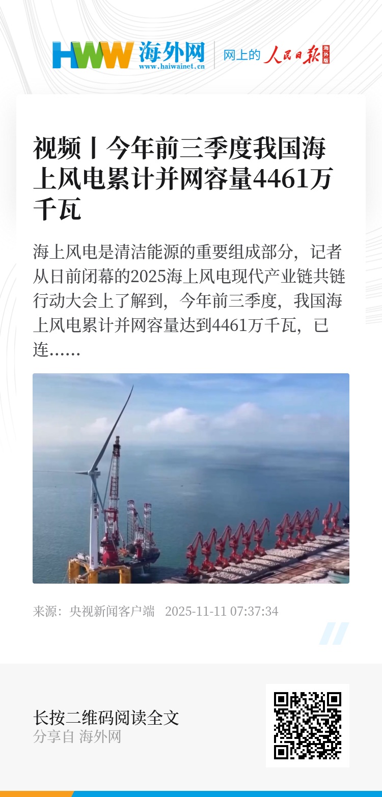 海上风电是清洁能源的重要组成部分,记者从日前闭幕的2025海上风电现代产业链共链行动大会上了解到,今年前三季度,我国海上风电累计并网容量达到4461万千瓦,已连续四年保持世界第一。