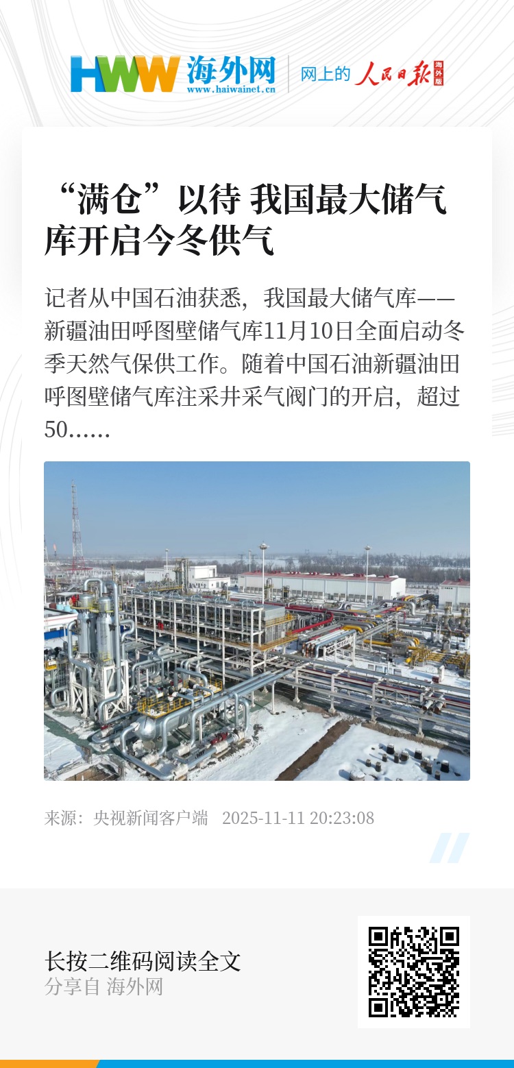 记者从中国石油获悉,我国最大储气库——新疆油田呼图壁储气库11月10日全面启动冬季天然气保供工作。
