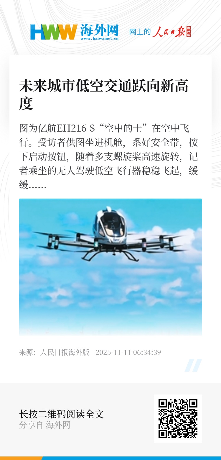 据了解,EH216-S无人驾驶载人航空器是全球首款获得型号合格证(TC)、生产许可证(PC)、标准适航证(AC)三大“通行证”的载人eVTOL。而这个拿到首批OC的“空中的士”,之所以可以先后拿到这4张行业“准入证”,是因为其在走向商业化前,经过了10余年漫长的技术研发和验证。在这个过程中,中国对低空经济发展的推动支持和政策,让研发团队把技术梦想变成了可以落地的现实。(本报记者 杨俊峰)