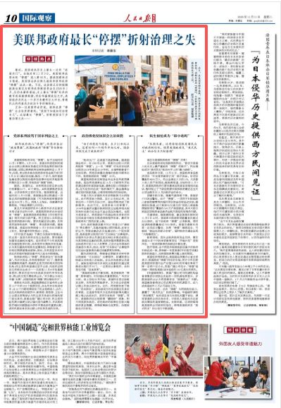 正如一位美国学者所说,联邦政府“停摆”让全世界都看到,“美国不知道如何治理自己”。这场最长“停摆”,折射美国当下多重治理之失——