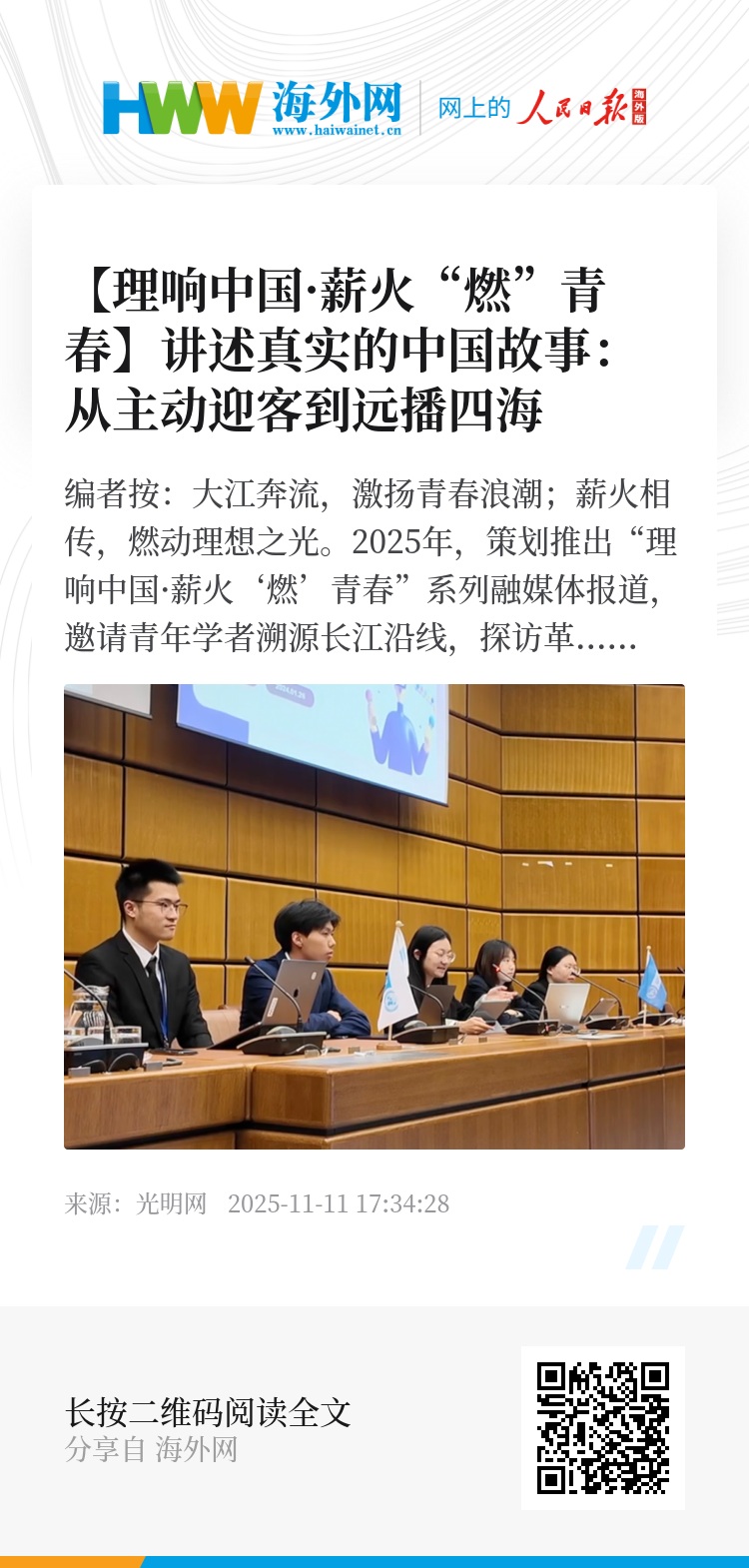 从延安一路走来,我们深刻认识到,国际传播不仅是讲述自我,更是双向奔赴。我们青年一代要弘扬宝贵经验,用开放的视野、真实的笔触、专业的表达,把新时代的中国故事讲得更远、更亮。