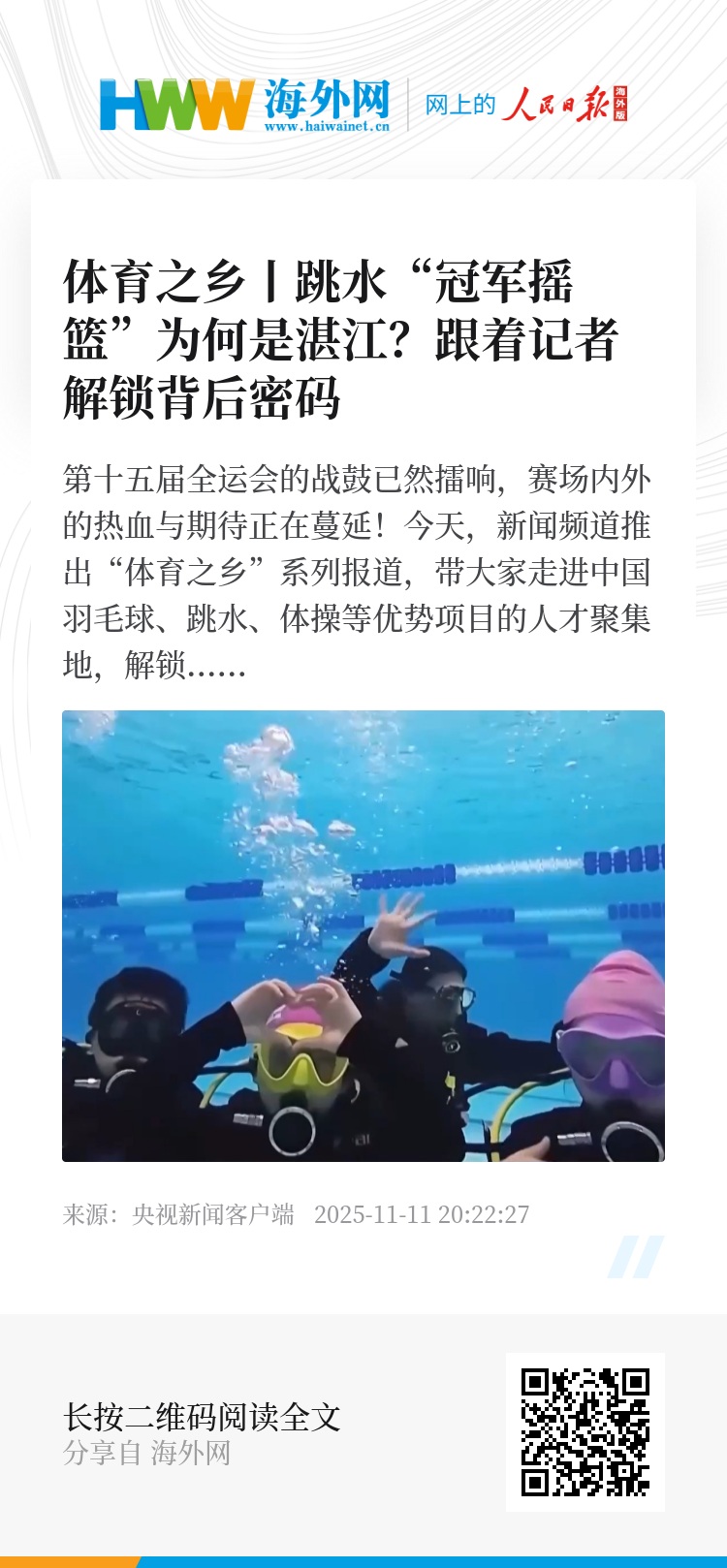 从渔民搭建的木板跳台,到如今的专业训练场馆;从街头追浪的孩童,到世界闻名的奥运冠军——湛江跳水的百年传承,藏在城市的每一处“水印记”里。