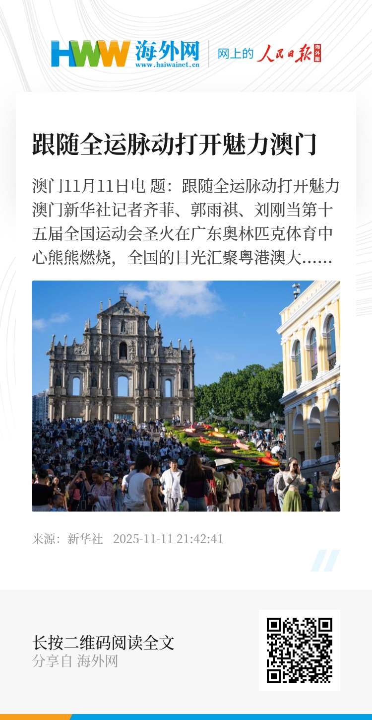 新华社澳门11月11日电 题:跟随全运脉动打开魅力澳门