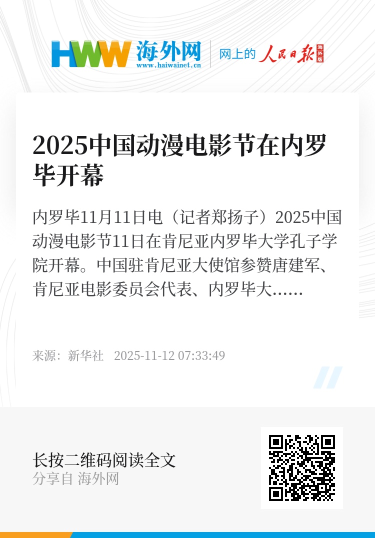新华社内罗毕11月11日电(记者郑扬子)2025中国动漫电影节11日在肯尼亚内罗毕大学孔子学院开幕。中国驻肯尼亚大使馆参赞唐建军、肯尼亚电影委员会代表、内罗毕大学孔子学院师生等共200余人出席开幕活动。