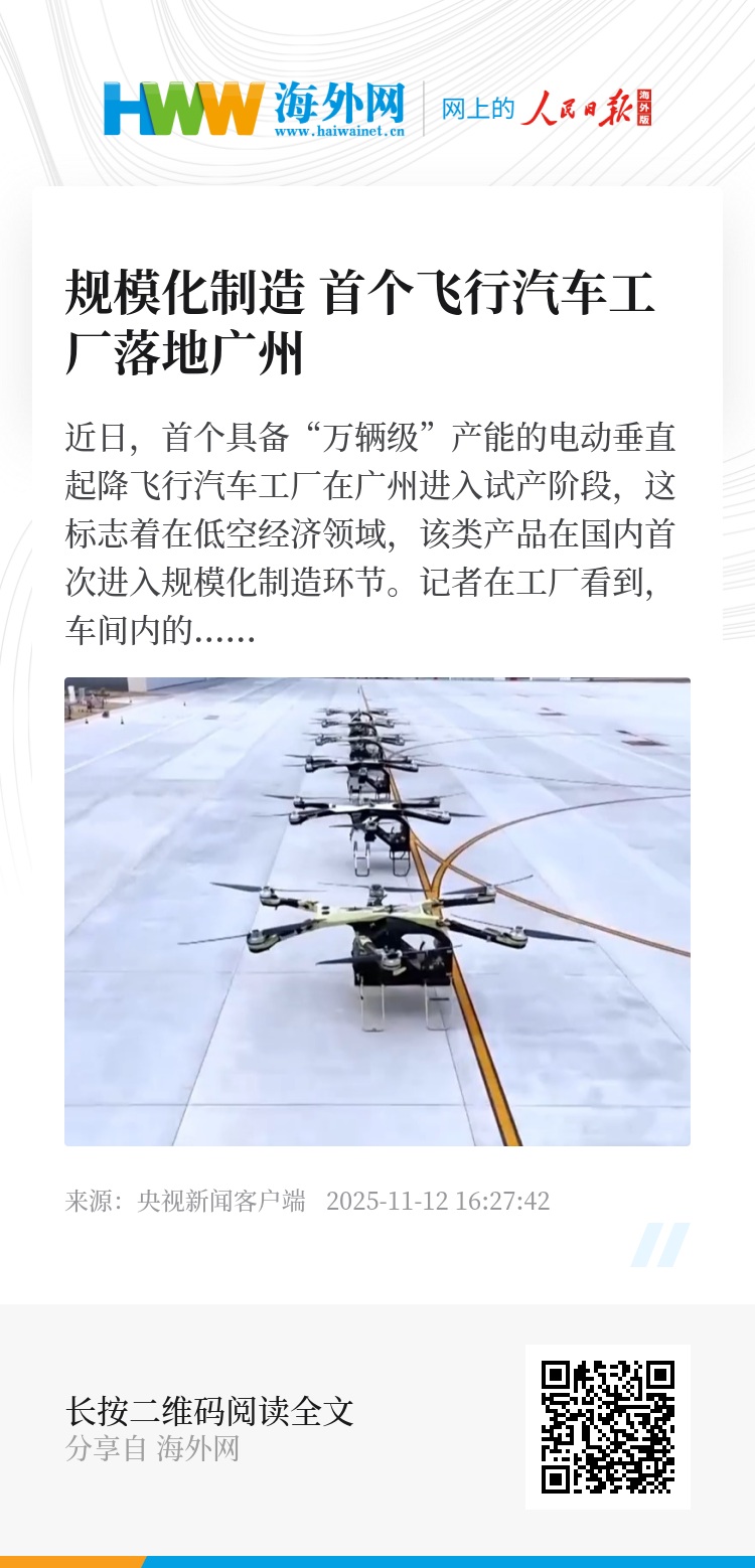 据介绍,待完成相关验证与适航取证后,工厂将按照规划逐步进入量产,实现飞行汽车从“小批量验证”迈向“规模化制造”的跨越。