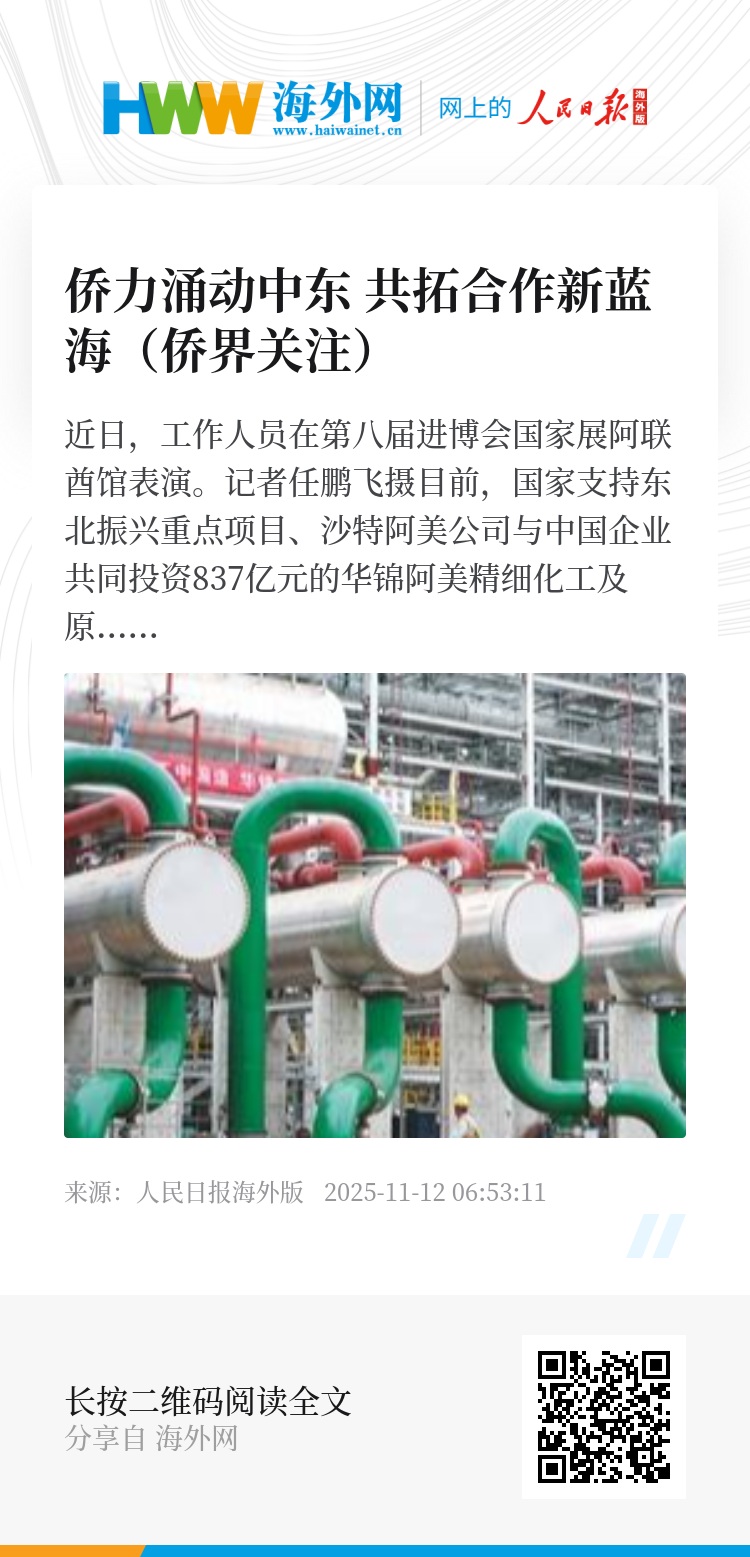 2025年世界互联网大会乌镇峰会中阿互联网发展与合作论坛在浙江乌镇举行、第七届中国—阿拉伯国家广播电视合作论坛在重庆开幕、中国—沙特企业圆桌会在利雅得举行、第九届沙特阿拉伯“未来投资倡议”大会在利雅得开幕、中国实现对海湾阿拉伯国家合作委员会(海合会)所有成员国的免签全覆盖、海湾国家“中国游”热潮涌动……近来,中国与阿拉伯国家往来热络。频繁往来于中国与该地区的华侨华人抢抓新机遇,并为推动中国与该地区国家交流合作发挥着独特作用。