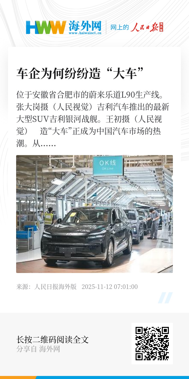 车企造“大车”的热潮还在延续。多位受访专家表示,“大”要有一定的限度和标准,面对市场机遇与挑战,车企要从“尺寸竞争”向“价值竞争”转型,满足消费者的品质出行需求。而作为消费者,也可在选购车辆时,更多地从实际需求出发,更多关注车辆的实际空间利用率和驾驶灵活性,而非一味追求更大的空间。(本报记者 徐佩玉)