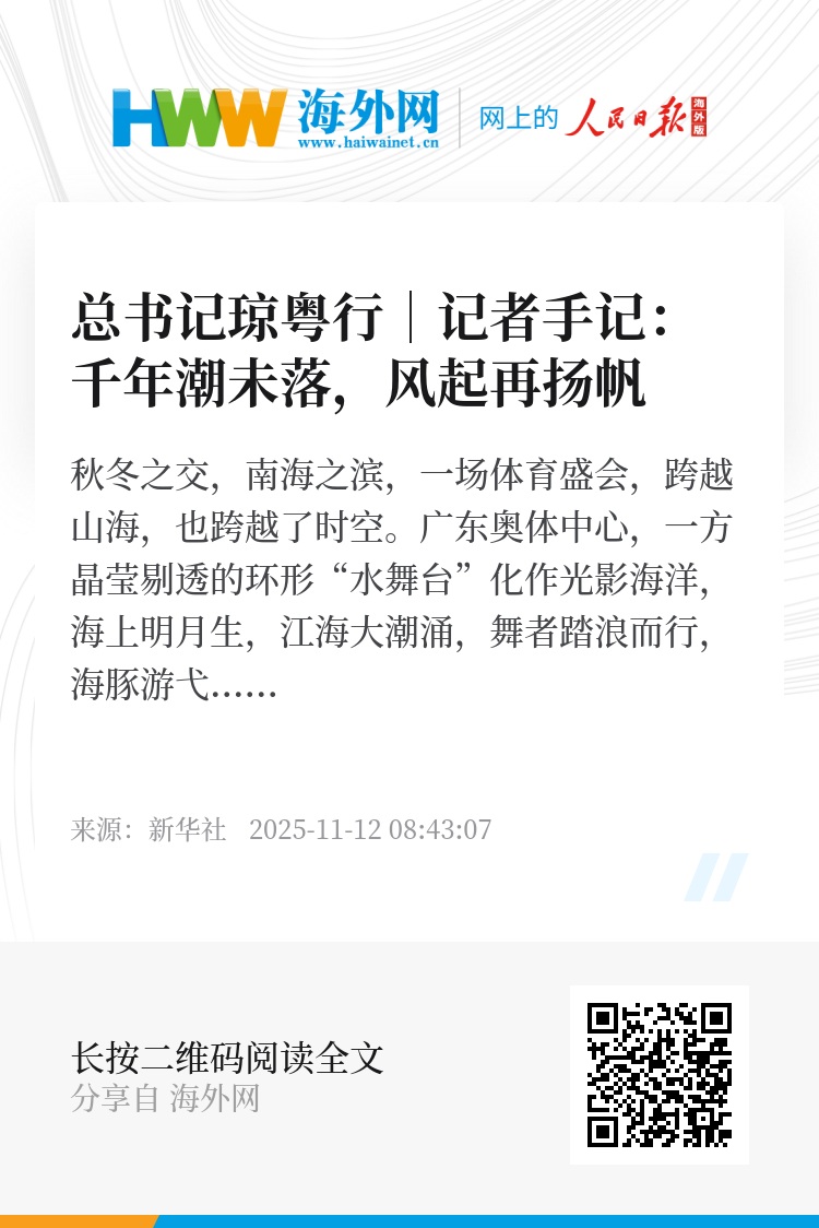 激情体育画卷,映照活力湾区。这届全运会,“不仅将见证新时代中国体育事业发展的新成就,也将展现中国式现代化在粤港澳大湾区的万千气象”。