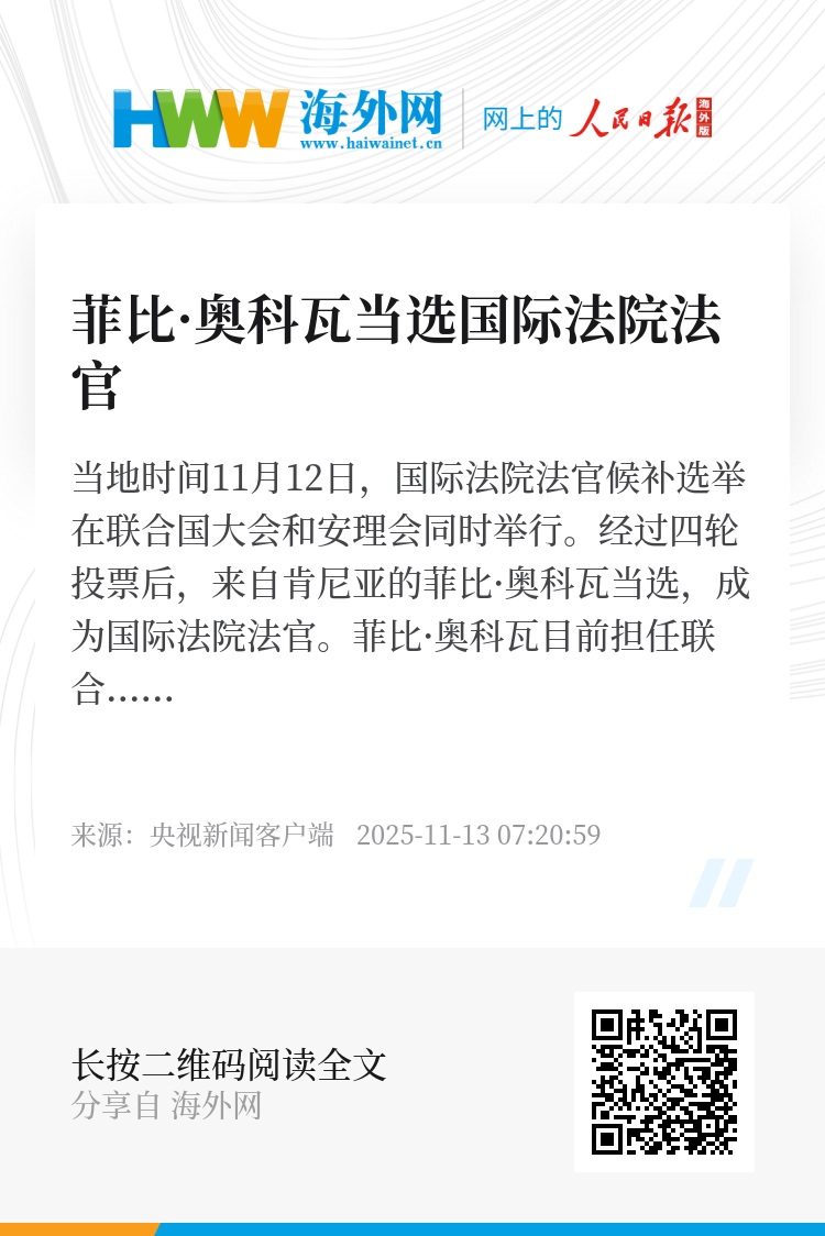 当地时间11月12日,国际法院法官候补选举在联合国大会和安理会同时举行。经过四轮投票后,来自肯尼亚的菲比·奥科瓦当选,成为国际法院法官。