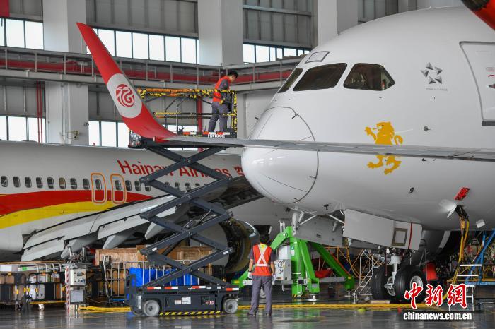 一站式飞机维修产业基地是海南自贸港核心引擎临空经济区的重要示范项目,2022年4月起投运。其位于空港综合保税区内、海口美兰国际机场东侧,大修与喷漆机库直接连通机场跑道。海口空港飞机维修工程有限公司董事长兼总经理王海烨说,这极大便利了飞机进行维护维修。