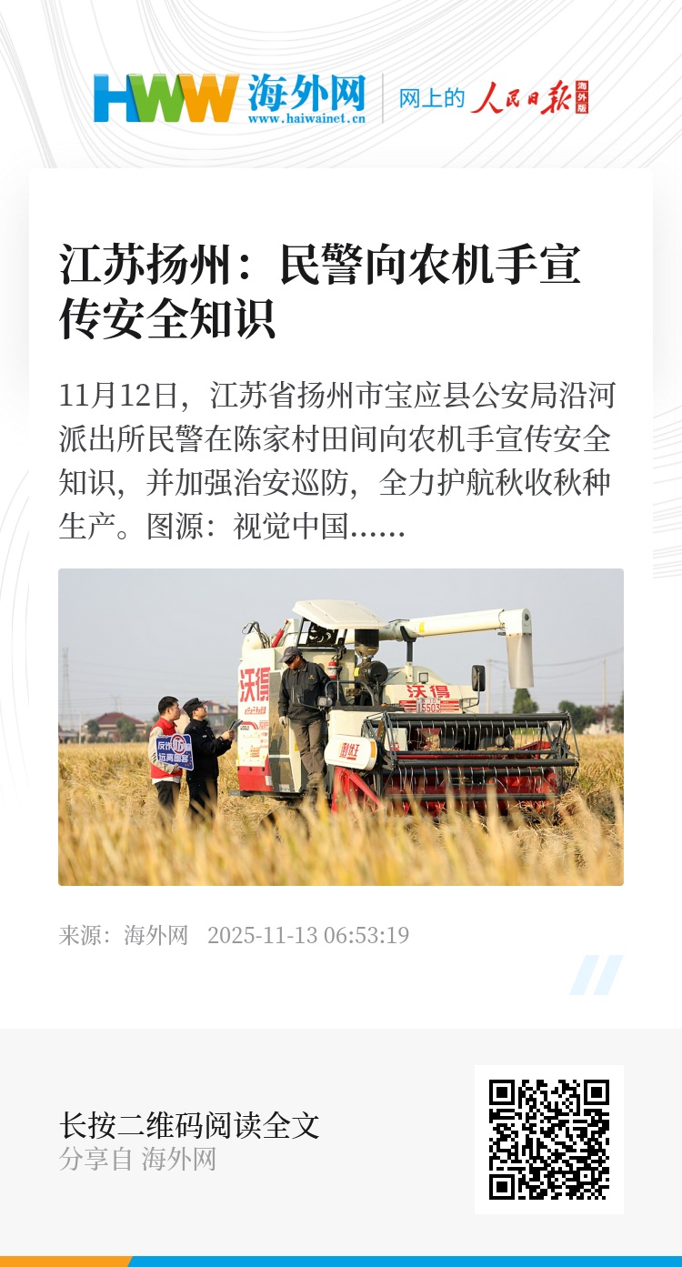 32908434,.江苏扬州:民警向农机手宣传安全知识,.2025-11-13 06:53:19,.204441,.张荣耀、姚凯红