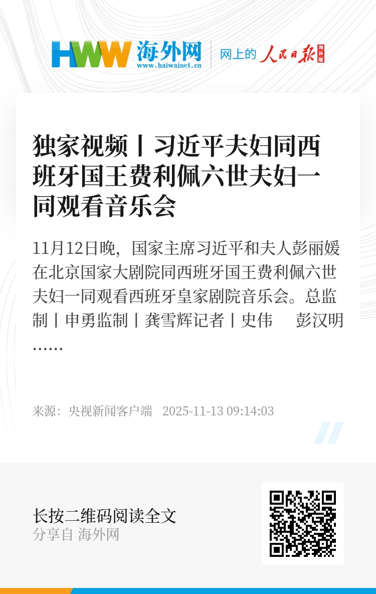 11月12日晚,国家主席习近平和夫人彭丽媛在北京国家大剧院同西班牙国王费利佩六世夫妇一同观看西班牙皇家剧院音乐会。