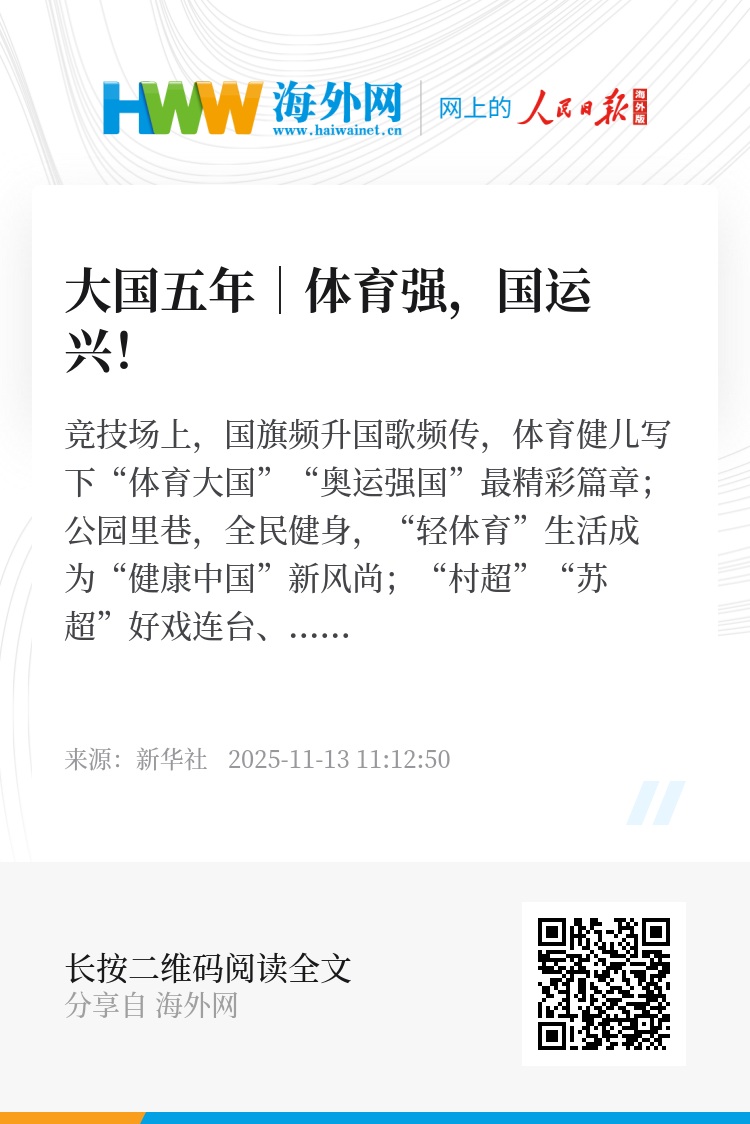 竞技场上,国旗频升国歌频传,体育健儿写下“体育大国”“奥运强国”最精彩篇章;公园里巷,全民健身,“轻体育”生活成为“健康中国”新风尚;“村超”“苏超”好戏连台、热火朝天,普通人成为新主角;新业态、新消费迸发无限活力,体育经济亿万规模助力国民经济……