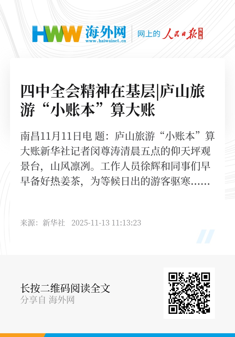 新华社南昌11月11日电 题:庐山旅游“小账本”算大账