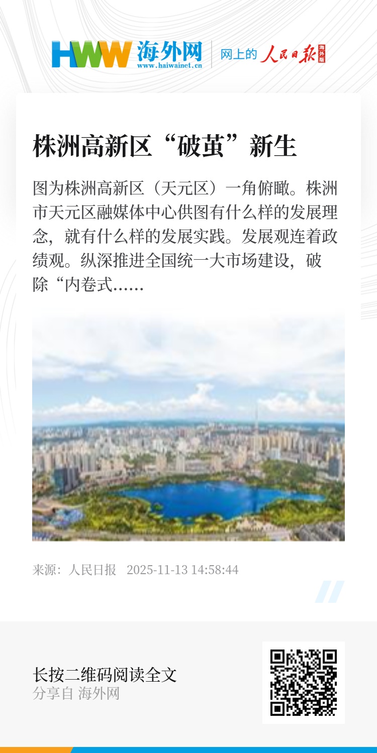 探索招商引资新模式,优化调整招商引资考核机制,实事求是确定招商引资数量指标考核权重……坚定不移走高质量发展之路,加快融入全国统一大市场,湘江奔涌,不舍昼夜,株洲高新区正寻求更多新突破。(记者 颜珂 卞民德)