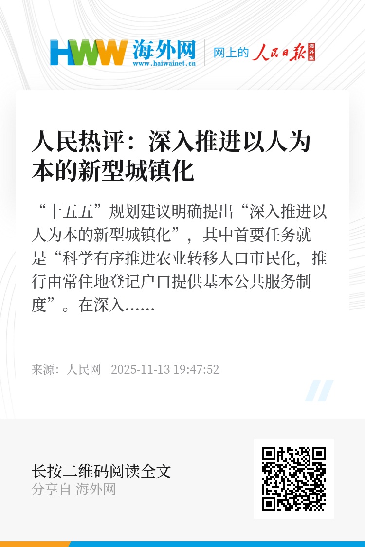 户籍改革的每一步,都连着民生冷暖;公共服务均等化的每一程,都系着公平正义。农民工的子女能在父母工作的城市安心就学,大学毕业生不再为落户辗转反侧……惟有深入推进以人为本的新型城镇化,每一位城市建设者才能平等享受发展成果。(蔡海龙)