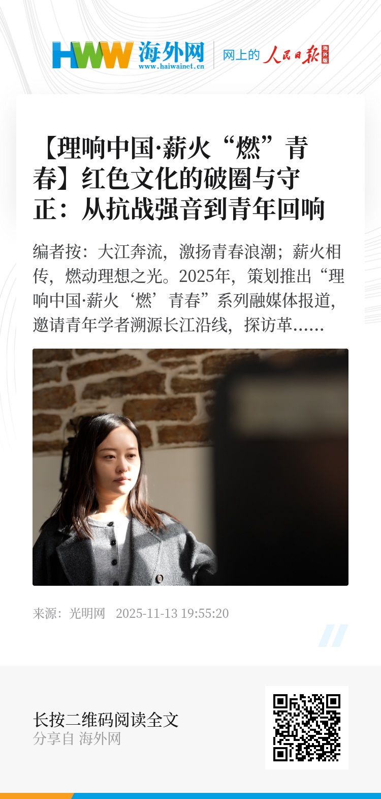 编者按:大江奔流,激扬青春浪潮;薪火相传,燃动理想之光。2025年,光明网策划推出“理响中国·薪火‘燃’青春”系列融媒体报道,邀请青年学者溯源长江沿线,探访革命圣地延安,亲历生态治理的壮阔实践,感悟红色血脉的赓续传承,在见证山河巨变中触摸时代脉搏,生动讲好中国故事背后的精神力量和实践伟力,激励新时代青年在中国式现代化建设中挺膺担当。本期视频,邀请中国传媒大学信息传播学院副教授王同媛,感受红色文化的力量及其在当代青年群体中的“破圈”传承。