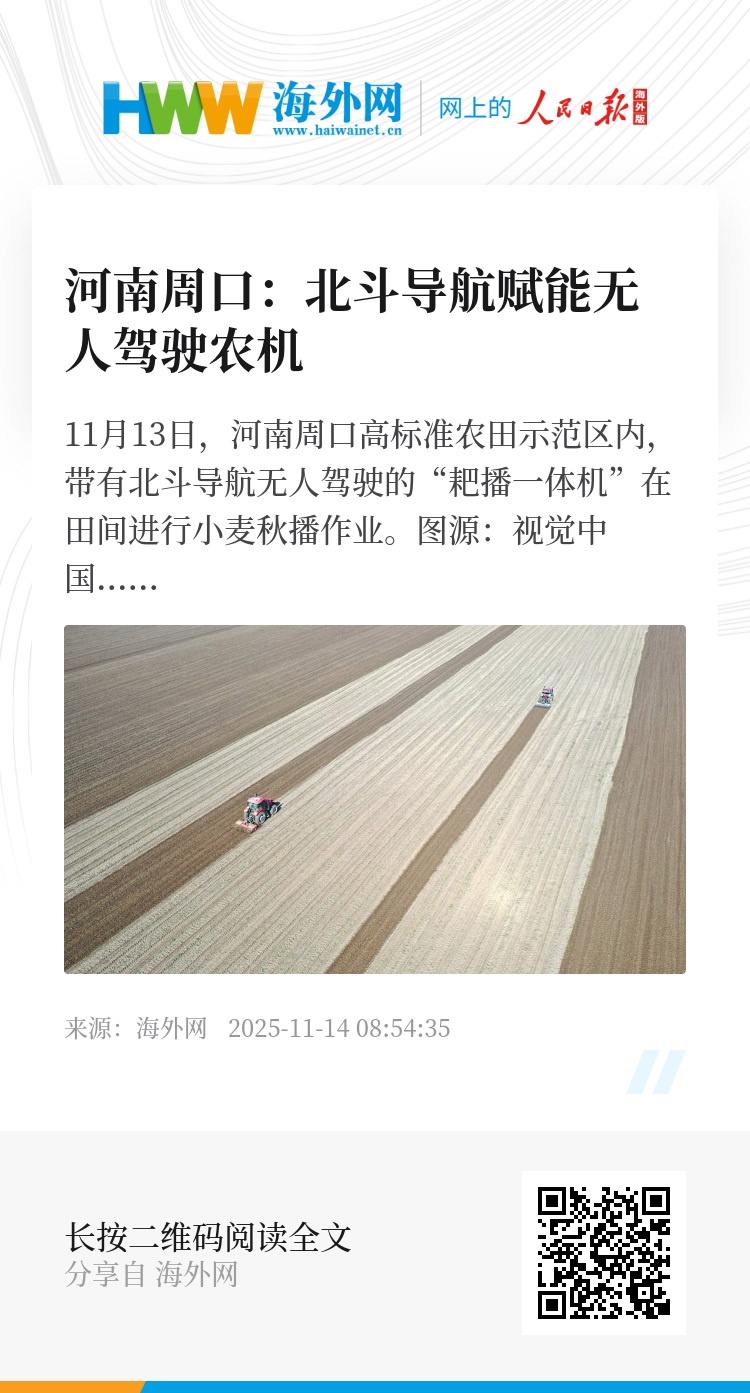 32908766,.河南周口:北斗导航赋能无人驾驶农机,.2025-11-14 08:54:35,.204555,.陈菲扬、卢思宇