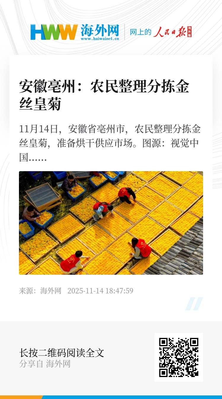 32908940,.安徽亳州:农民整理分拣金丝皇菊,.2025-11-14 18:47:59,.204589,.黄之安、王珊宁