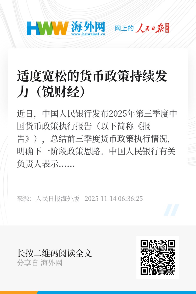 近日,中国人民银行发布2025年第三季度中国货币政策执行报告(以下简称《报告》),总结前三季度货币政策执行情况,明确下一阶段政策思路。中国人民银行有关负责人表示,中国人民银行综合运用数量、价格、结构等多种货币政策工具,为经济回升向好和金融市场稳定运行创造了适宜的货币金融环境。