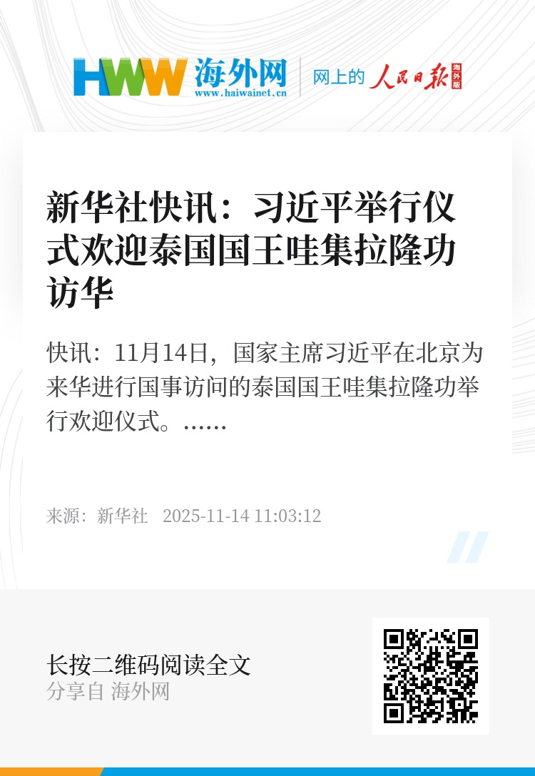 新华社快讯:习近平举行仪式欢迎泰国国王哇集拉隆功访华