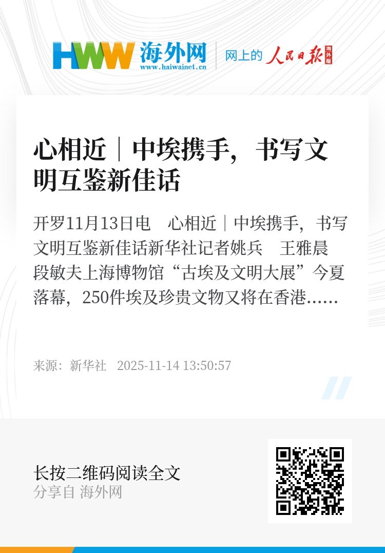 新华社开罗11月13日电 心相近|中埃携手,书写文明互鉴新佳话