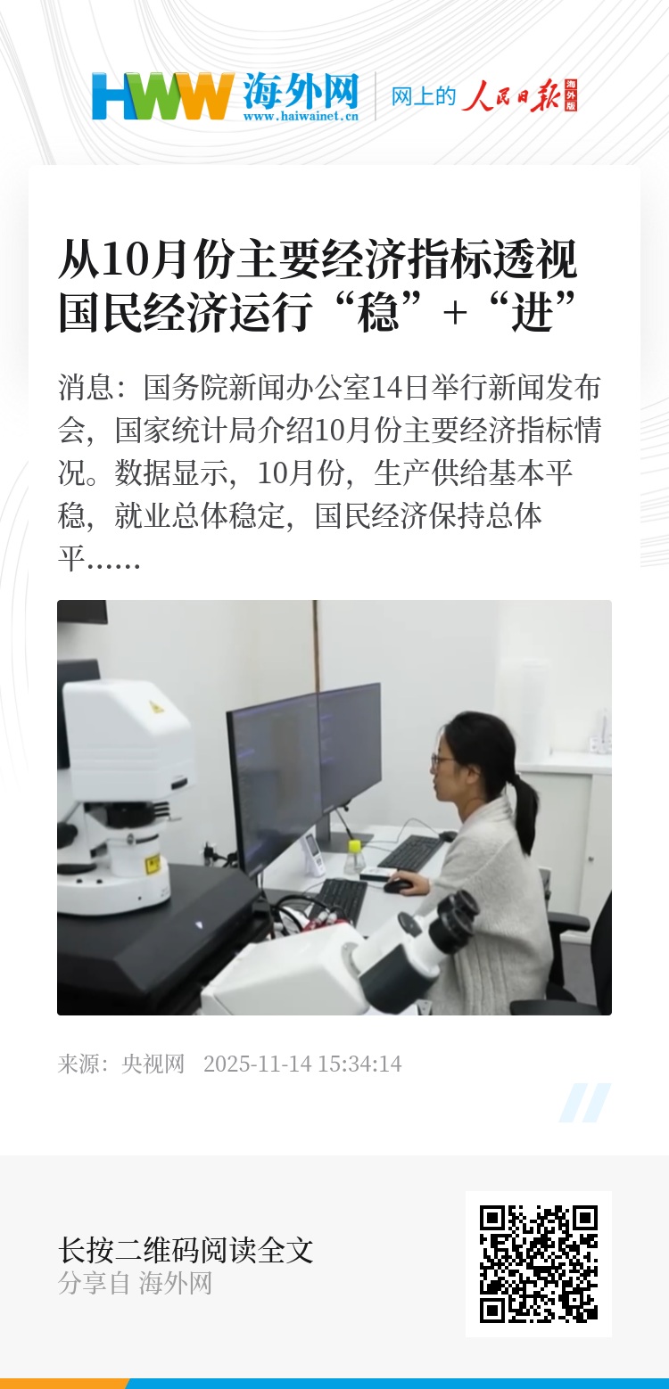 国家统计局新闻发言人付凌晖称:“提振消费专项行动持续显效,假日经济带动作用明显,商品和服务零售持续增长。10月份社会消费品零售总额同比增长2.9%,消费品以旧换新相关商品的销售保持较快增长。1—10月份,服务零售额同比增长5.3%,快于商品零售额增速。”
