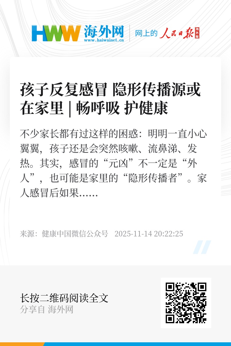 不少家长都有过这样的困惑:明明一直小心翼翼,孩子还是会突然咳嗽、流鼻涕、发热。其实,感冒的“元凶”不一定是“外人”,也可能是家里的“隐形传播者”。