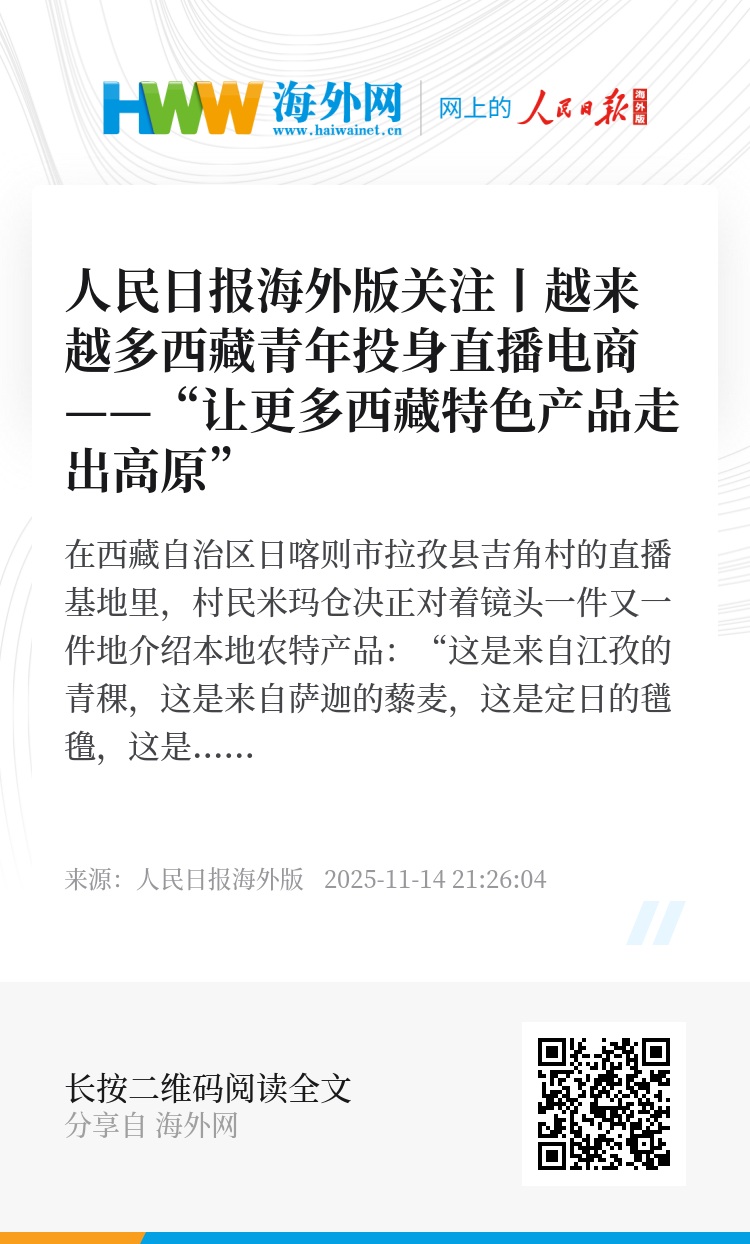 “我们希望培育更多像米玛仓决一样的青年电商创业者,让更多西藏特色产品走出高原,带动当地群众增收致富。”上海援藏干部联络组相关负责人说。(徐驭尧)