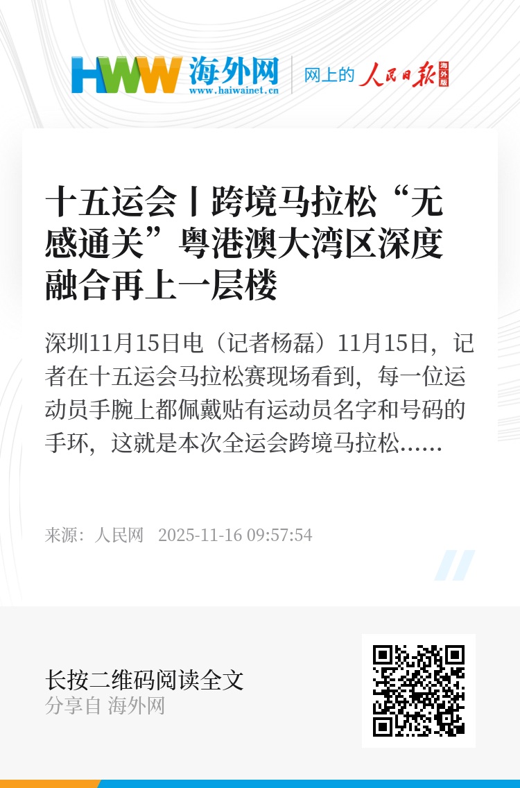黄钊表示,深圳边检总队将总结十五运会赛事保障经验,推广到更多跨境赛事中,“助力打造粤港澳新的竞赛名片,助力粤港澳大湾区深度融合。”