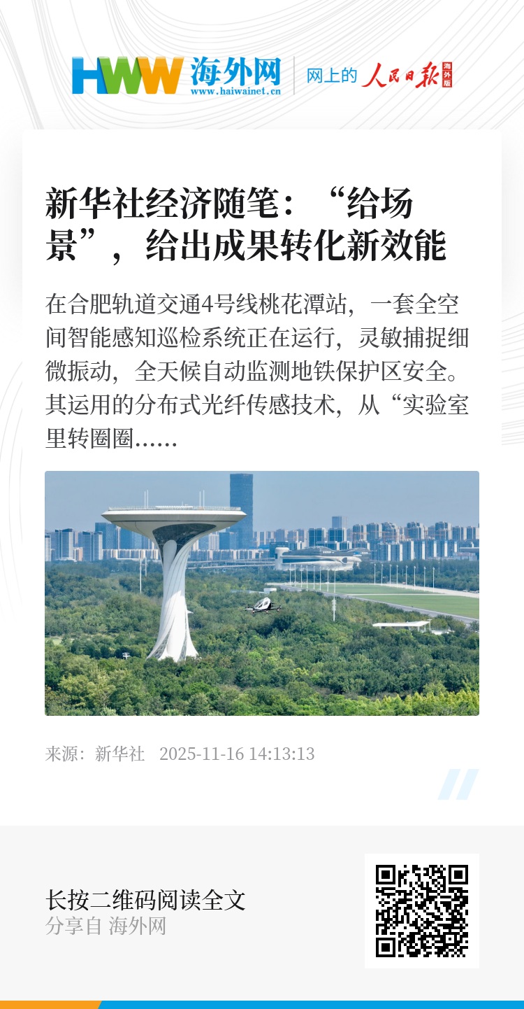 在合肥轨道交通4号线桃花潭站,一套全空间智能感知巡检系统正在运行,灵敏捕捉细微振动,全天候自动监测地铁保护区安全。其运用的分布式光纤传感技术,从“实验室里转圈圈”到落地应用解决实际问题,科技创新成果转化路径的打通,秘诀就在于——“给场景”。