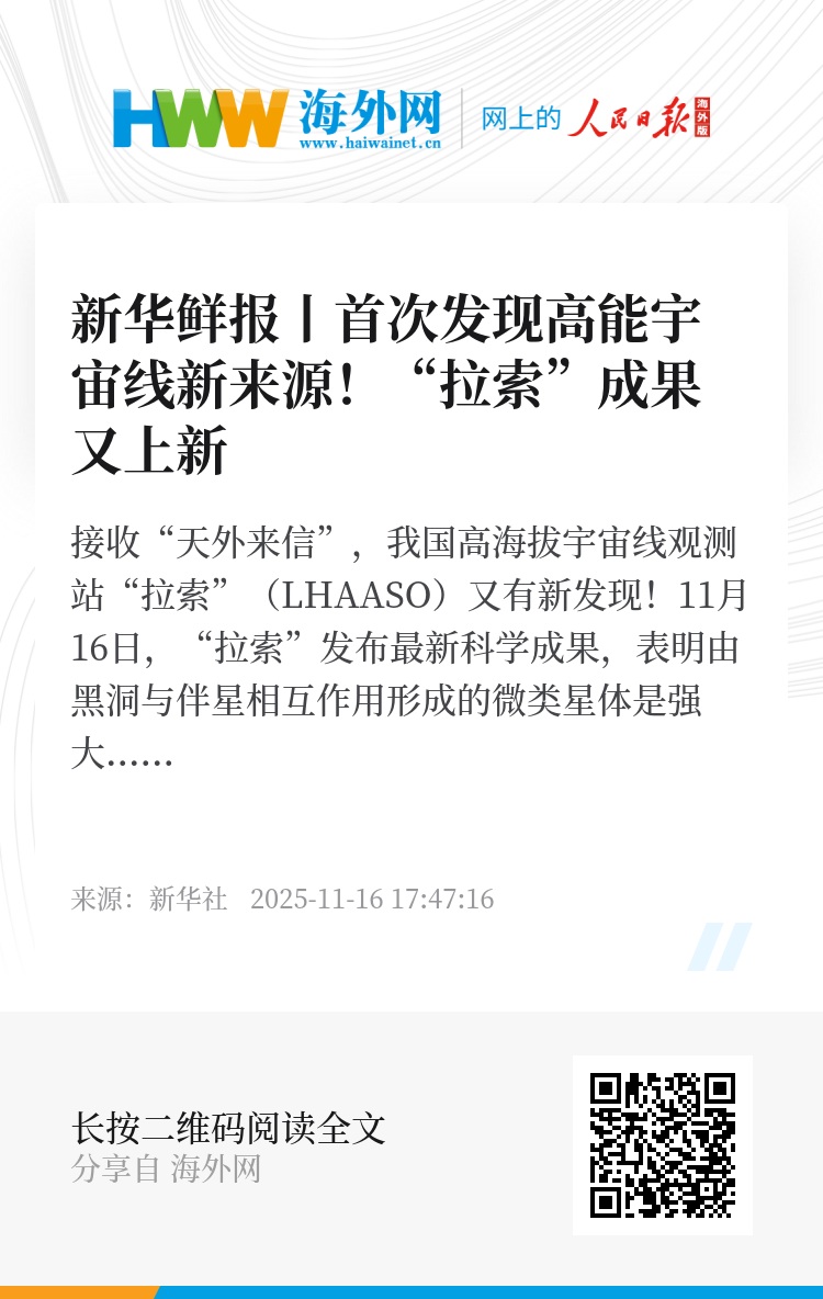 深度参与科学事业,拓展人类认知边界,“拉索”正持续带来具有全球影响力的突破性成果。