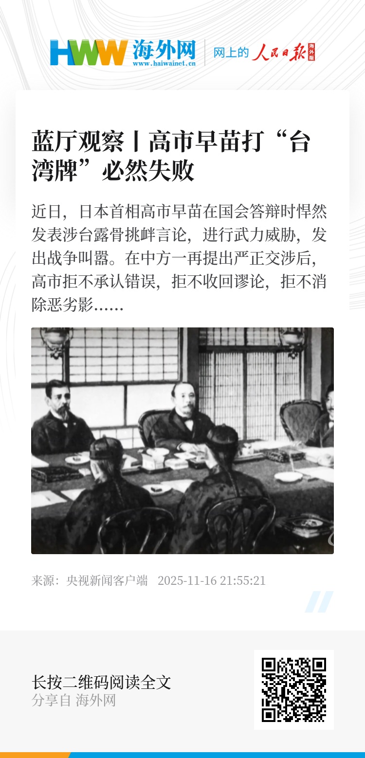 高市涉台谬论蓄意挑战战后国际秩序