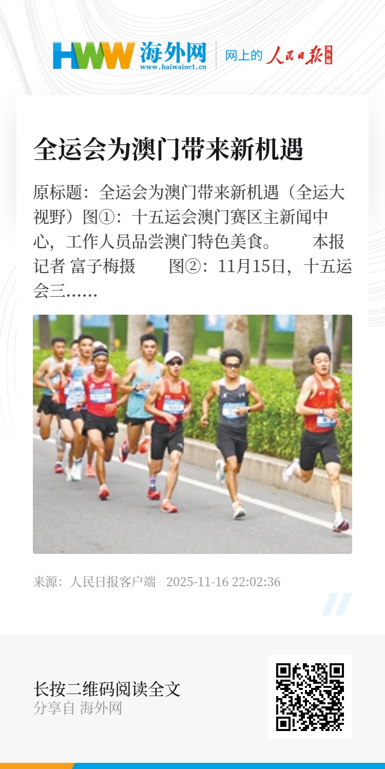 原标题:全运会为澳门带来新机遇(全运大视野)
