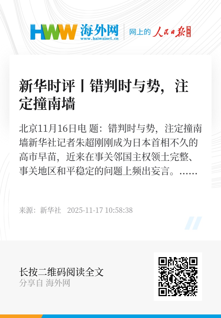 新华社北京11月16日电 题:错判时与势,注定撞南墙