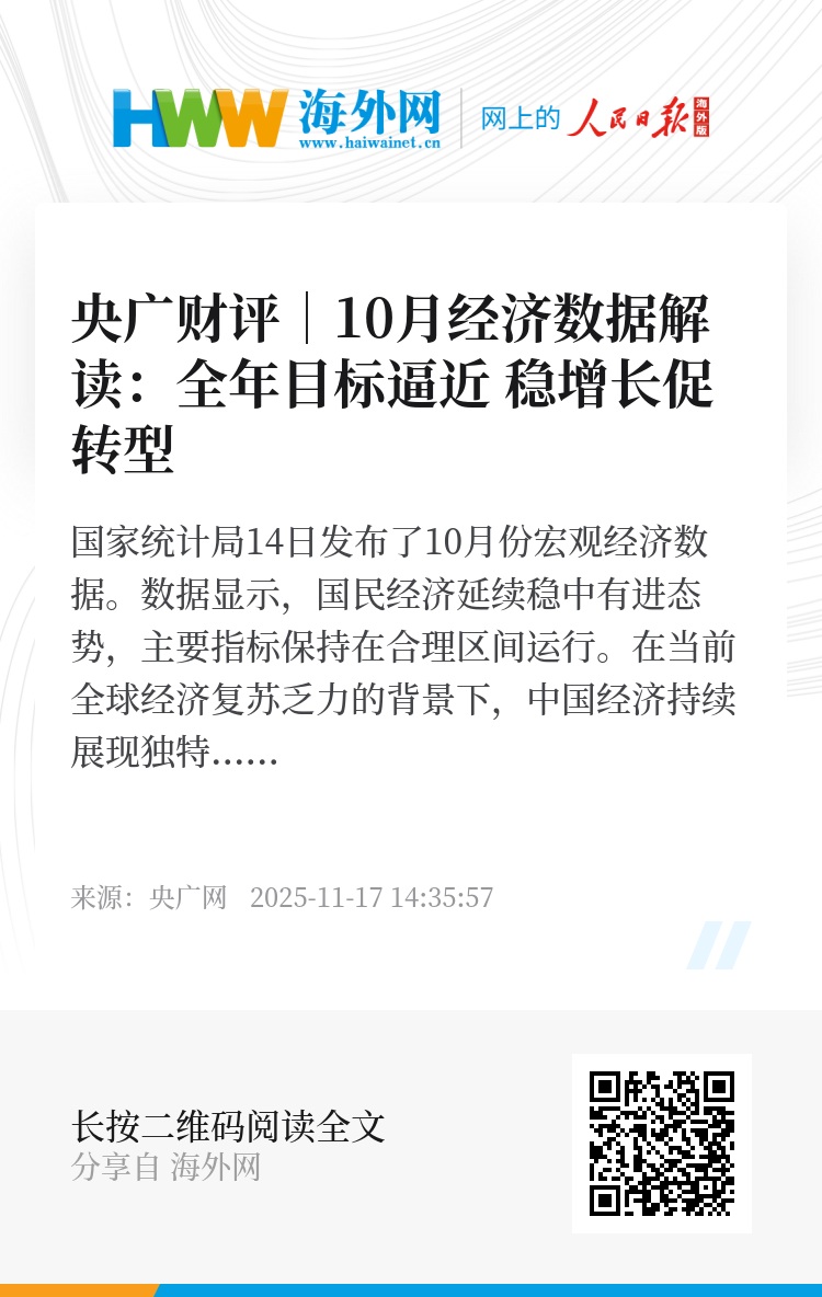 国家统计局14日发布了10月份宏观经济数据。数据显示,国民经济延续稳中有进态势,主要指标保持在合理区间运行。在当前全球经济复苏乏力的背景下,中国经济持续展现独特的韧性和潜力,为实现全年经济发展目标奠定了坚实基础。