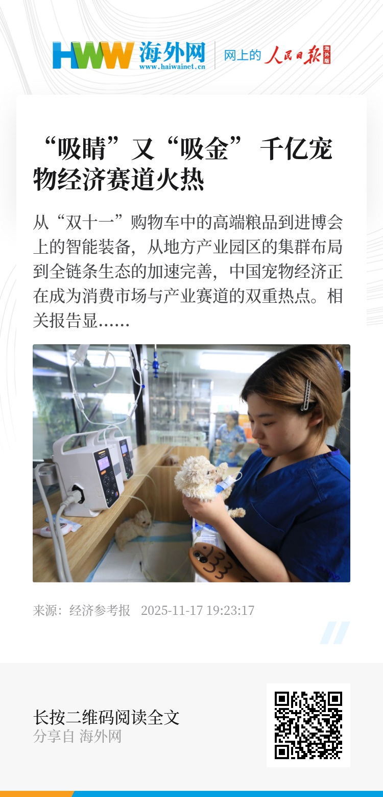 “宠物经济覆盖食品、用品、医疗、服务、文旅等多领域,产业链长、关联度高,能够带动上下游协同发展,形成产业集群效应。例如,宠物食品加工可联动农业、制造业,智能用品生产可融合电子、物联网技术,宠物医疗可推动生物医药、医疗器械创新,从而促进地方产业结构优化升级。”国研新经济研究院创始院长朱克力对《经济参考报》记者表示。
