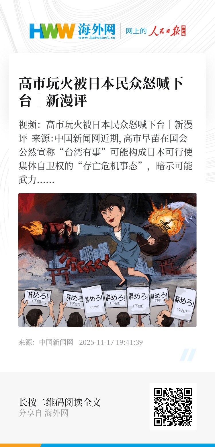 视频:高市玩火被日本民众怒喊下台|新漫评 来源:中国新闻网