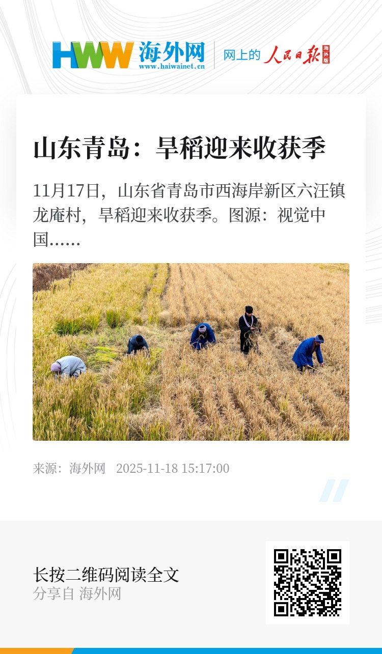 32909755,.山东青岛:旱稻迎来收获季,.2025-11-18 15:17:00,.204309,.陈亚楠、侯兴川