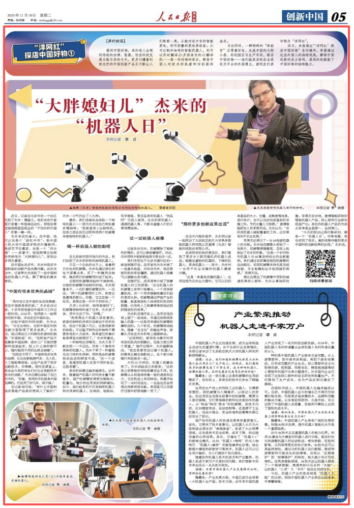 “今天的探访让我印象深刻,像是一个‘机器人日’。非常有趣,我也学到了很多。真的很期待看到更多中国科技创新成果的出现。”杰米说。(本报记者 李 贞)