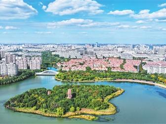 江苏省张家港GDP已超3000亿元,跻身“超强县”之列。图为江苏省张家港暨阳湖国家生态公园,色彩斑斓,水清岸绿,呈现出一幅美丽的生态画卷。