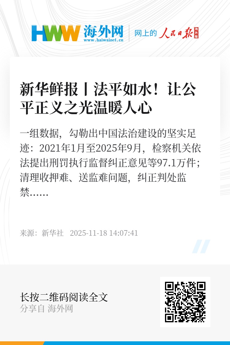 一组数据,勾勒出中国法治建设的坚实足迹:2021年1月至2025年9月,检察机关依法提出刑罚执行监督纠正意见等97.1万件;清理收押难、送监难问题,纠正判处监禁刑罚罪犯未交付执行9.6万人;2022年以来对不当“减假暂”提出纠正意见7.5万件……