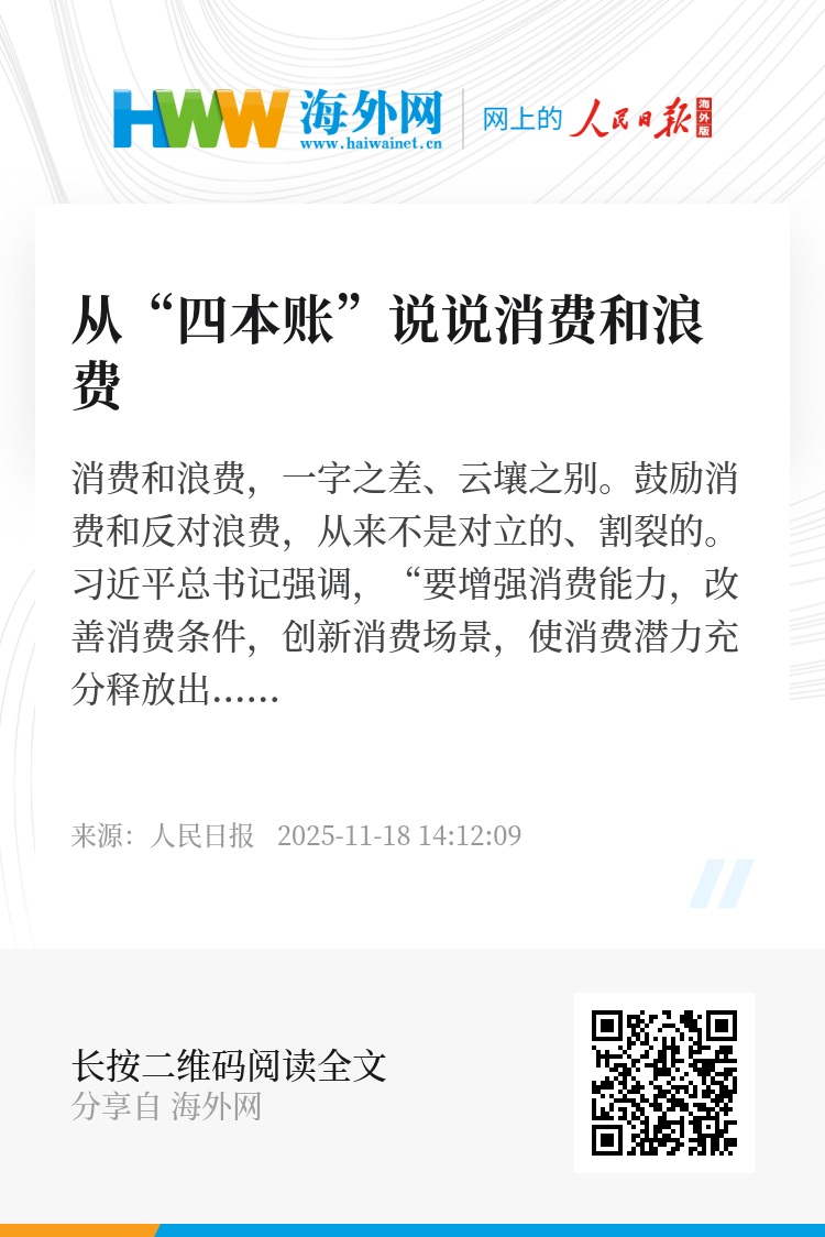 鼓励消费和反对浪费,从来不是对立的、割裂的。习近平总书记强调,“要增强消费能力,改善消费条件,创新消费场景,使消费潜力充分释放出来”“要提倡艰苦奋斗、勤俭节约,坚决反对铺张浪费,在全社会营造浪费可耻、节约光荣的浓厚氛围”。“十五五”规划建议提出“坚持扩大内需这个战略基点,坚持惠民生和促消费、投资于物和投资于人紧密结合”,并对大力提振消费作出部署。这些重要论断和部署,体现了鼓励消费和反对浪费的内在统一,是我们做好工作的思想方法。